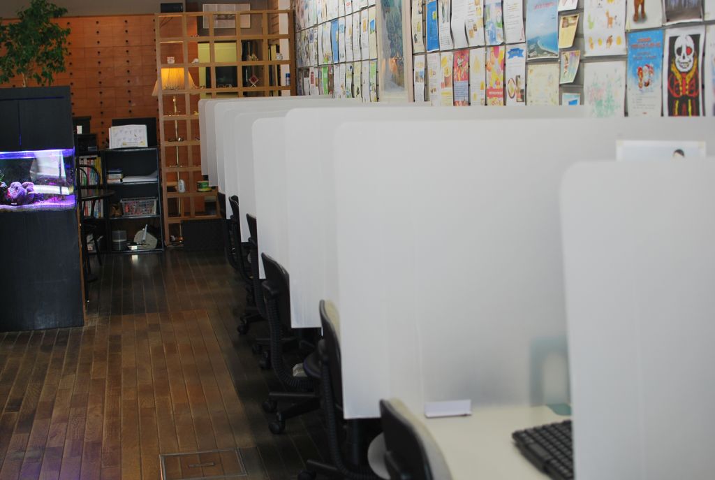 実は最初の写真で生徒さんがいないのはネットワークの不具合でパソコンのファイルの保存とかが出来なくってしまって急遽生徒さんに移動して頂きました。